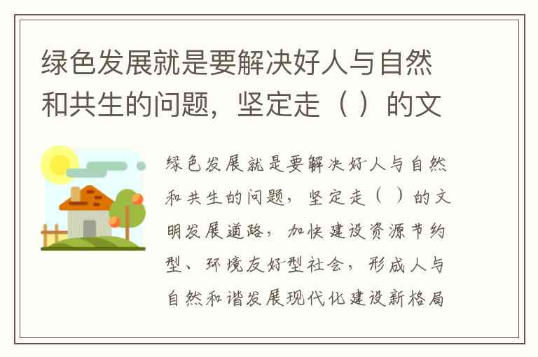 绿色发展就是要解决好人与自然和共生的问题,坚定走( )的文明发展道路,加快建设资源节约型、环境友好型社会,形成人与自然和谐发展现代化建设新格局,推进美丽中国建设。