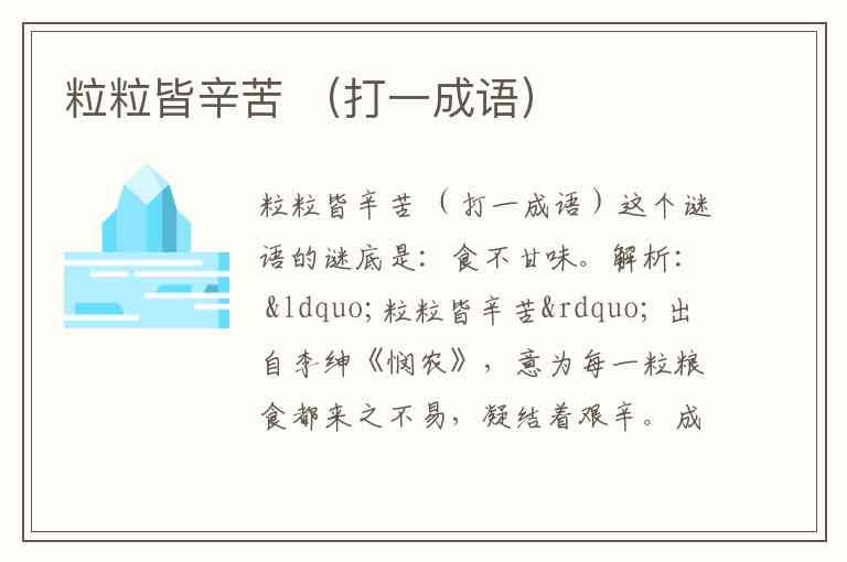 解析: “粒粒皆辛苦” 出自李绅《悯农》,意为每一粒粮食都来之不易,凝结着艰辛。