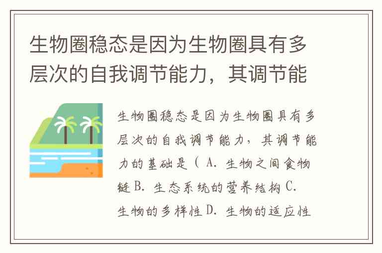 生物圈稳态是因为生物圈具有多层次的自我调节能力,其调节能力的基础是( A. 生物之间食物链 B. 生态系统的营养结构 C. 生物的多样性 D. 生物的适应性