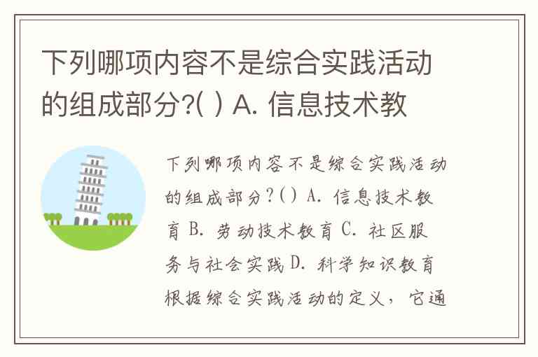下列哪项内容不是综合实践活动的组成部分?( ) A. 信息技术教育 B. 劳动技术教育 C. 社区服务与社会实践 D. 科学知识教育