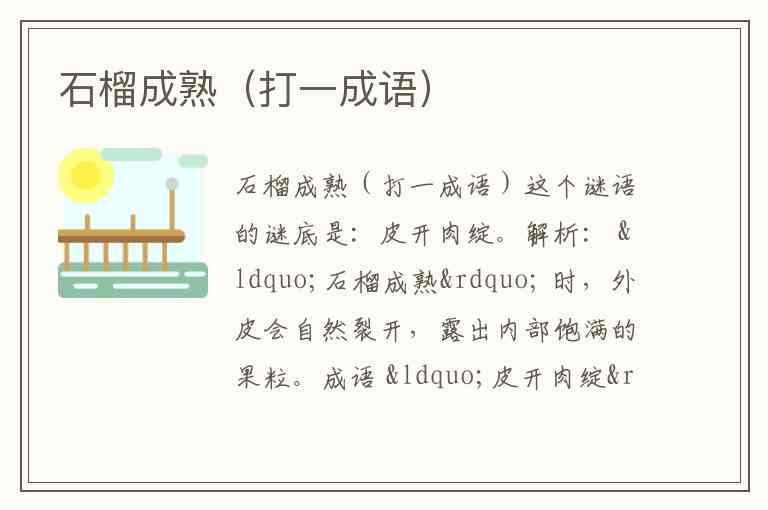 成语 “皮开肉绽” 本义是皮肉开裂,形容伤势严重,但此处别解为 “果皮开裂、果肉绽出”,与石榴成熟的特征双关呼应。