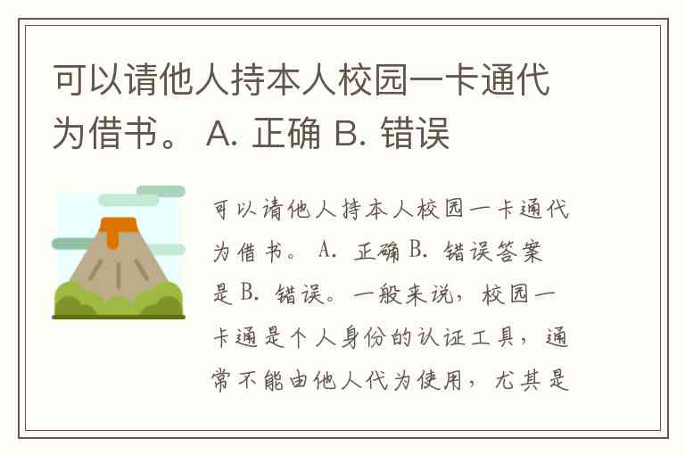 可以请他人持本人校园一卡通代为借书。 A. 正确 B. 错误