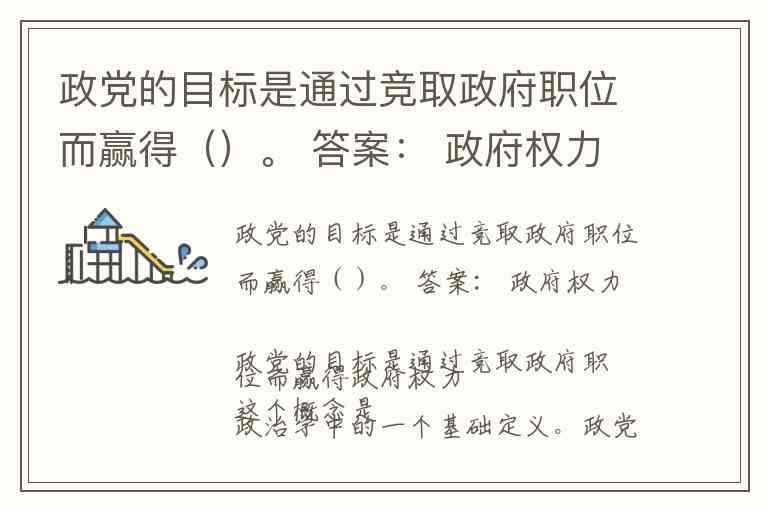 政党的目标是通过竞取政府职位而赢得()。 答案: 政府权力