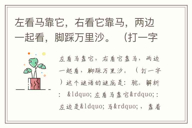 四句谜面通过字形拆分和特性描述,指向“驼”字。