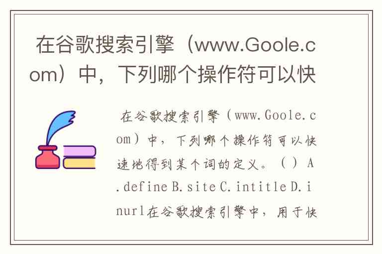 在谷歌搜索引擎中,用于快速查询某个词定义的操作符是 A. define。