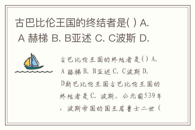 古巴比伦王国的终结者是( ) A. A 赫梯 B. B亚述 C. C波斯 D. D新巴比伦王国