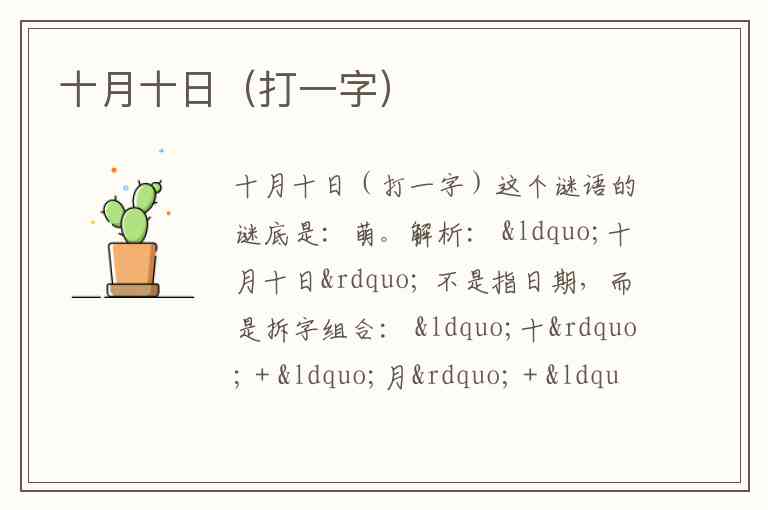 解析: “十月十日” 不是指日期,而是拆字组合: “十” + “月” + “十” + “日”。