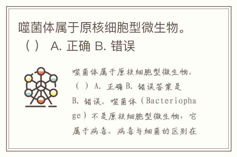 噬菌体属于原核细胞型微生物。( ) A. 正确 B. 错误