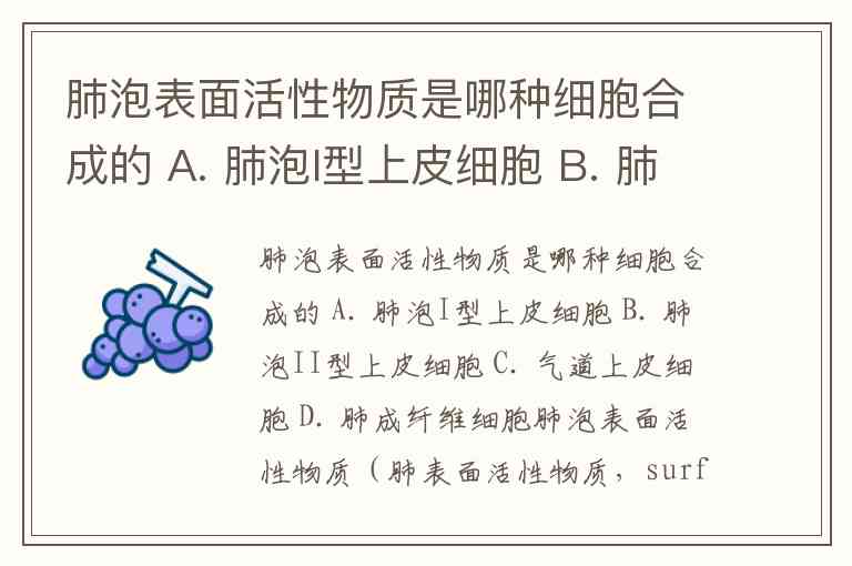 肺泡表面活性物质(肺表面活性物质,surfactant)是由 肺泡II型上皮细胞(B选项)合成和分泌的。