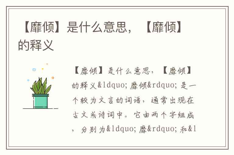 “靡倾”是一个较为文言的词语,通常出现在古文或诗词中。它由两个字组成,分别为“靡”和“倾”。