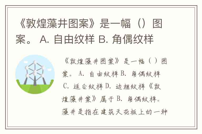 《敦煌藻井图案》是一幅()图案。 A. 自由纹样 B. 角偶纹样 C. 适合纹样 D. 边框纹样