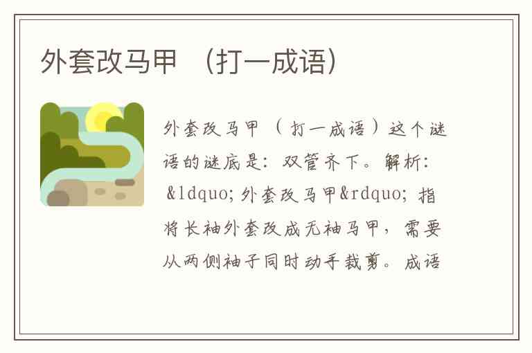成语 “双管齐下” 本义是两件事同时进行,但此处别解为 “双袖管一齐拆下”,与改衣过程双关呼应。