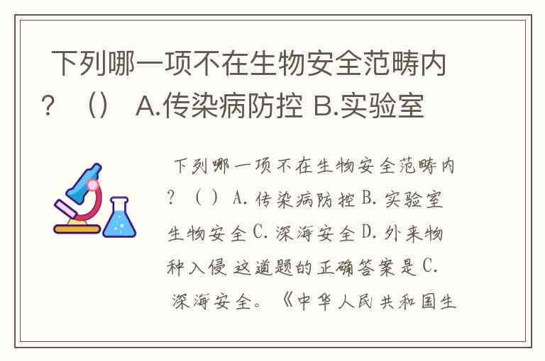 而“深海安全”通常涉及的是海洋权益、资源勘探、航道安全等地缘政治、环境工程或国防领域的议题,与生物因子直接引发的风险关联度较低,因此不属于《生物安全法》划定的范畴。