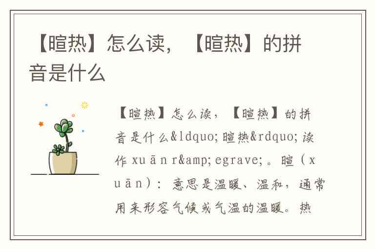 【暄热】怎么读,【暄热】的拼音是什么