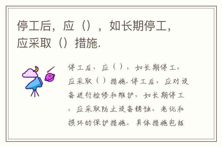 这些措施有助于延长设备的使用寿命,并确保停工后设备能够顺利恢复运行。