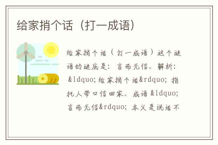 给家捎个话(打一成语)