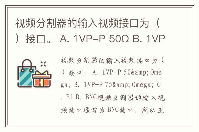 视频分割器的输入视频接口为()接口。 A. 1VP-P 50Ω B. 1VP-P 75Ω C. E1 D. BNC