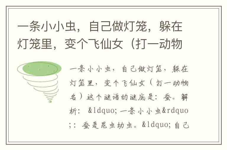一条小小虫,自己做灯笼,躲在灯笼里,变个飞仙女(打一动物名)