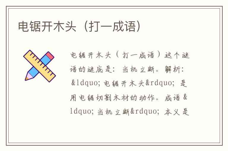 成语 “当机立断” 本义是抓住时机果断决策,但此处别解为 “当着机器(电锯)立刻断开的”,与电锯的工作方式双关呼应。