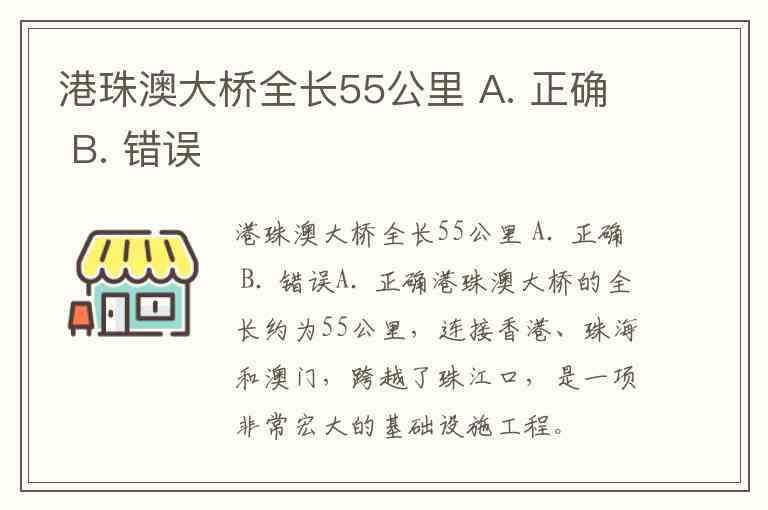 港珠澳大桥全长55公里 A. 正确 B. 错误