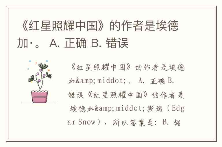 《红星照耀中国》的作者是埃德加·。 A. 正确 B. 错误