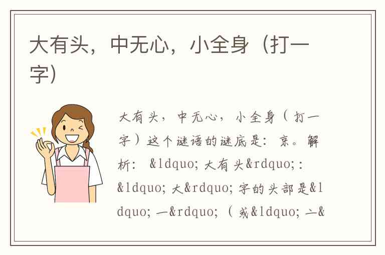 因此,“大有头,中无心,小全身”=“亠”+“口”+“小”=“京”。