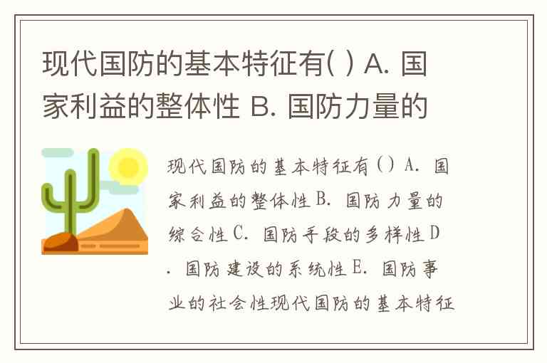 现代国防的基本特征有( ) A. 国家利益的整体性 B. 国防力量的综合性 C. 国防手段的多样性 D. 国防建设的系统性 E. 国防事业的社会性