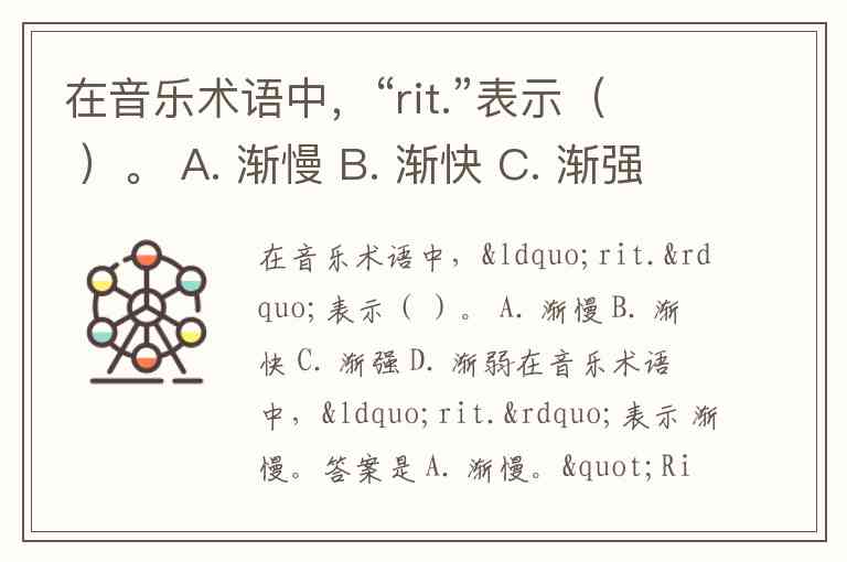 在音乐术语中,“rit.”表示( )。 A. 渐慢 B. 渐快 C. 渐强 D. 渐弱