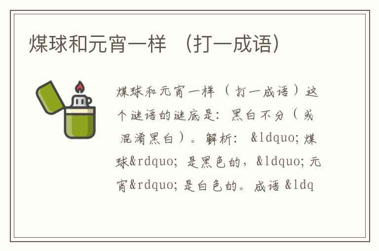 成语 “黑白不分” 本义指不辨是非,但此处别解为 “煤球与元宵颜色不同却混为一谈”,与谜面双关呼应。