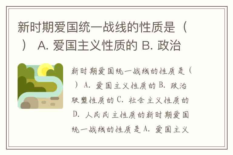 新时期爱国统一战线的性质是( ) A. 爱国主义性质的 B. 政治联盟性质的 C. 社会主义性质的 D. 人民民主性质的