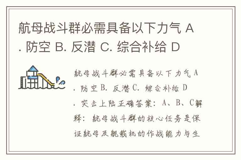 航母战斗群必需具备以下力气 A. 防空 B. 反潜 C. 综合补给 D. 突击上陆