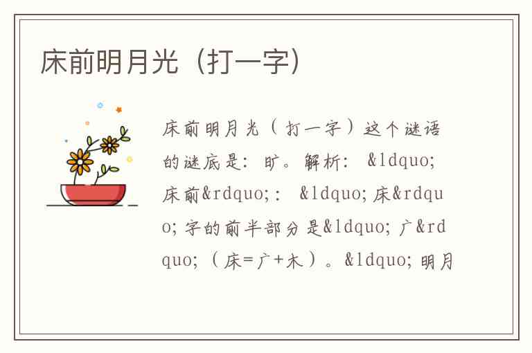 因此,“床前明月光”=“广”+“日”=“旷”。