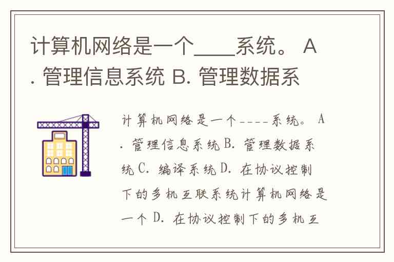 计算机网络是一个____系统。 A. 管理信息系统 B. 管理数据系统 C. 编译系统 D. 在协议控制下的多机互联系统
