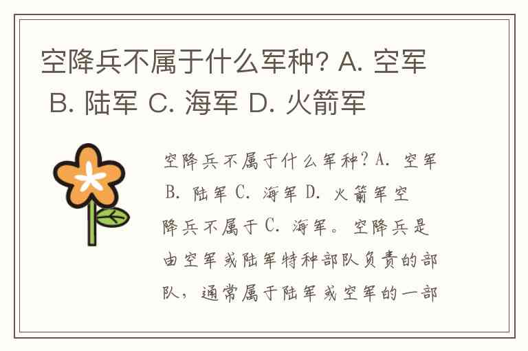 空降兵不属于什么军种? A. 空军 B. 陆军 C. 海军 D. 火箭军