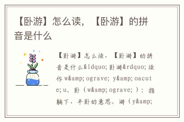 如果是指“卧游”这一词语,它通常用来形容一种独特的游览方式或生活方式,比如在床上或类似的地方进行精神上的游历或放松,类似于幻想或通过书籍、电影等方式进行“虚拟的旅行”。