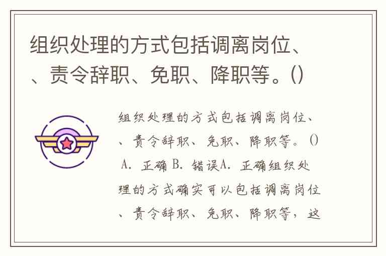 组织处理的方式包括调离岗位、、责令辞职、免职、降职等。() A. 正确 B. 错误