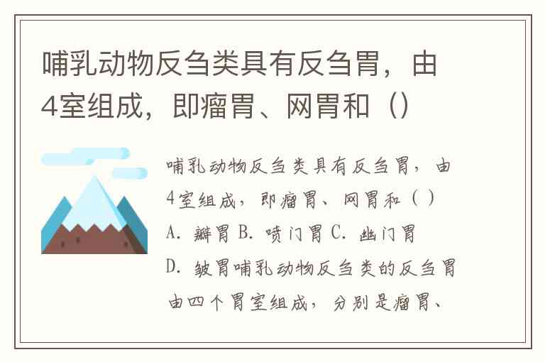 哺乳动物反刍类的反刍胃由四个胃室组成,分别是瘤胃、网胃、皱胃和瓣胃。