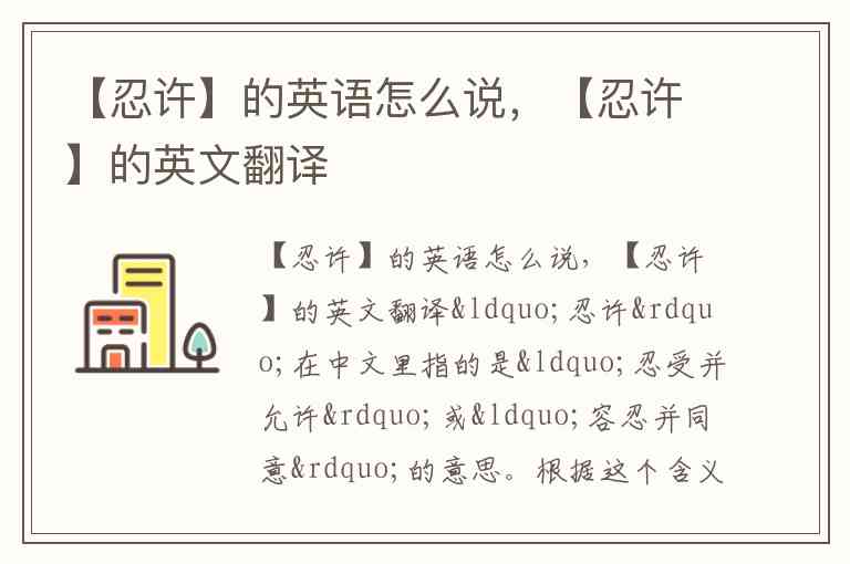 不过,“忍许”并不是一个常见的词汇,可能需要根据上下文来决定最合适的翻译。你有具体的例句吗?这样我可以提供更准确的翻译。