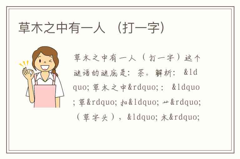 解析: “草木之中”: “草”扣“艹”(草字头),“木”扣“木”。