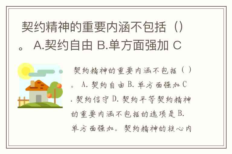 契约精神的重要内涵不包括的选项是 B. 单方面强加。