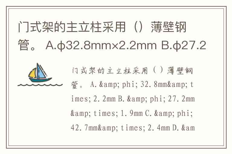 门式脚手架主立柱采用的薄壁钢管规格是 C. φ42.7mm×2.4mm。