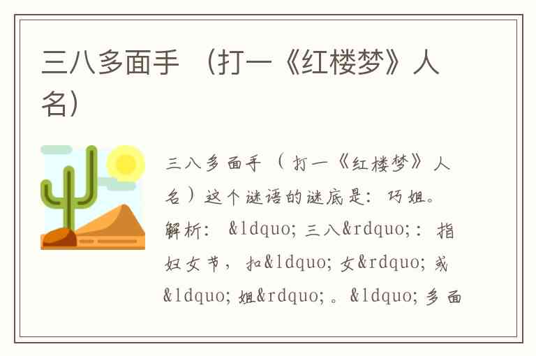 合起来即《红楼梦》中王熙凤之女 巧姐 的名字。