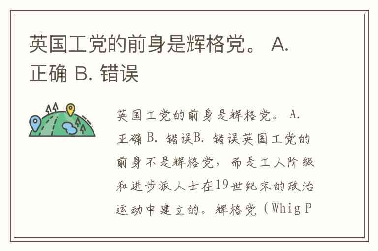 英国工党的前身是辉格党。 A. 正确 B. 错误