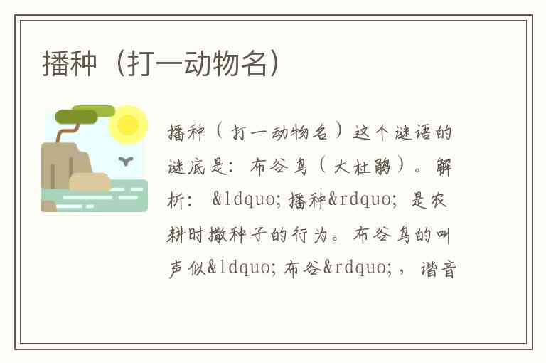 播种(打一动物名)