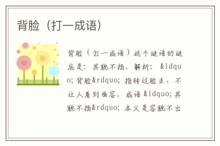成语 “其貌不扬” 本义是容貌不出众,但此处别解为 “他的容貌不显露(扬)”,与“背脸”的动作双关呼应。