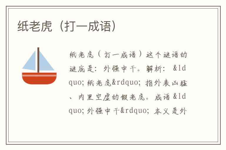 成语 “外强中干” 本义是外表强大,内里虚弱,与纸老虎的特征完全契合。