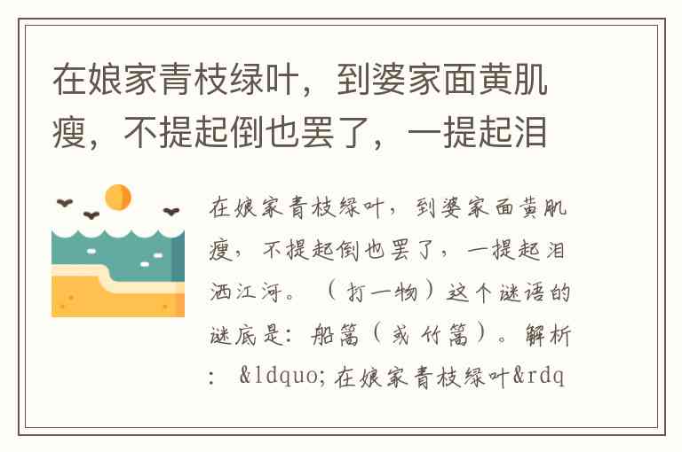 解析: “在娘家青枝绿叶”:船篙原为竹子(青枝绿叶)。