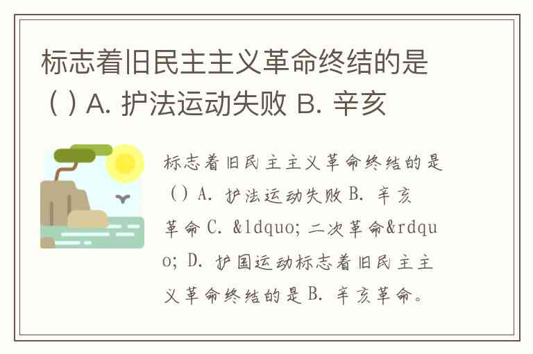 标志着旧民主主义革命终结的是 B. 辛亥革命。