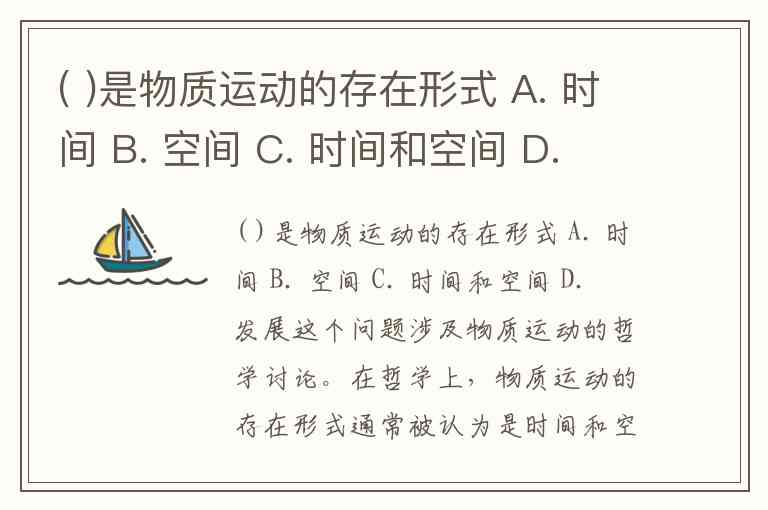( )是物质运动的存在形式 A. 时间 B. 空间 C. 时间和空间 D. 发展