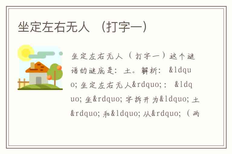 解析: “坐定左右无人”: “坐”字拆开为“土”和“从”(两人),但“左右无人”表示去掉“从”(左右两人),剩下 “土”。